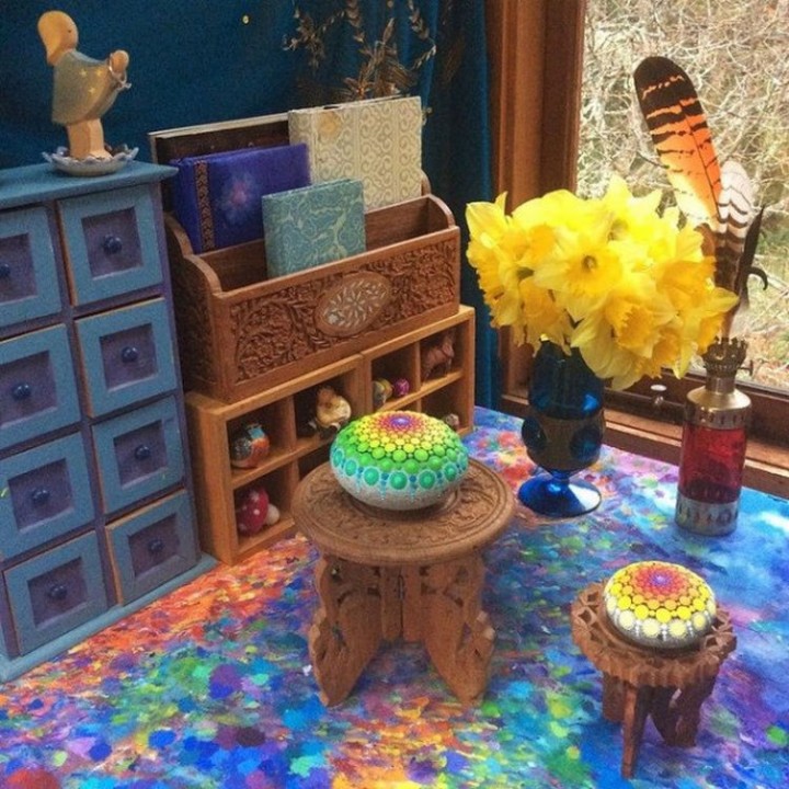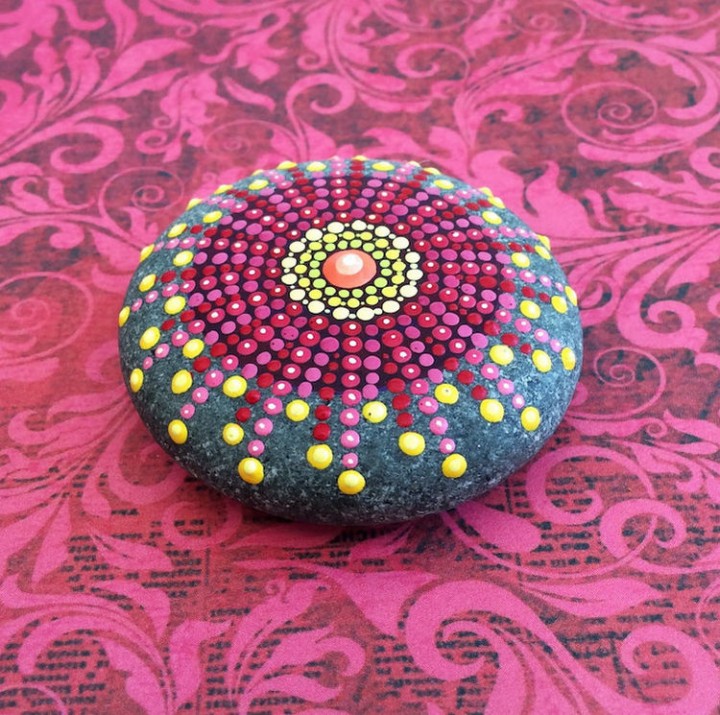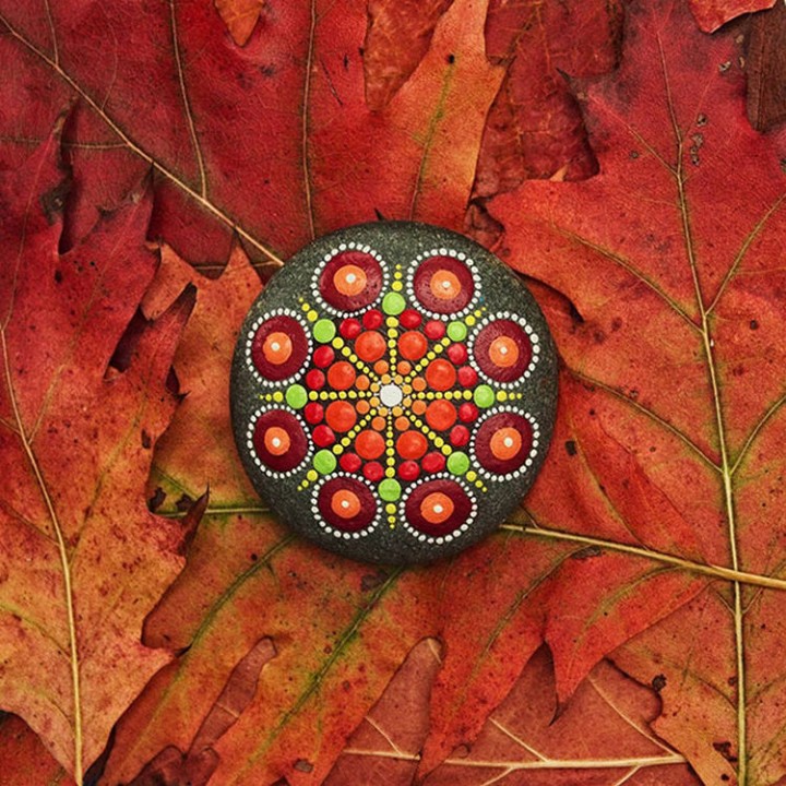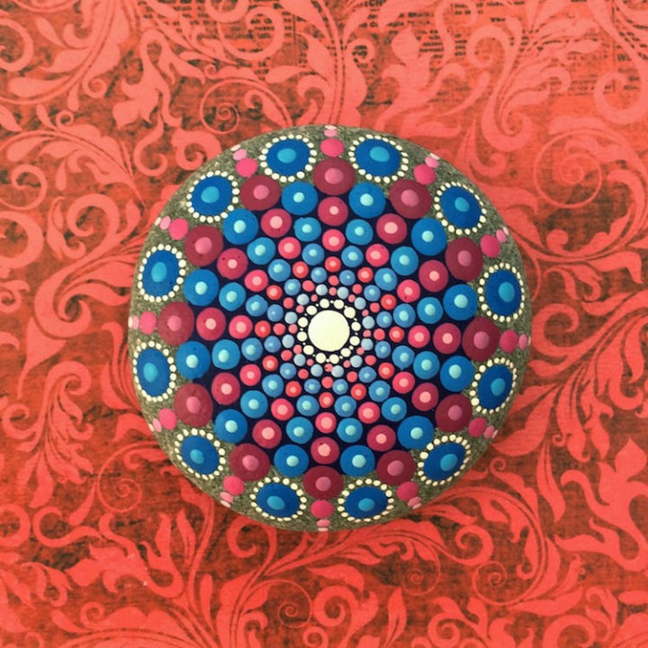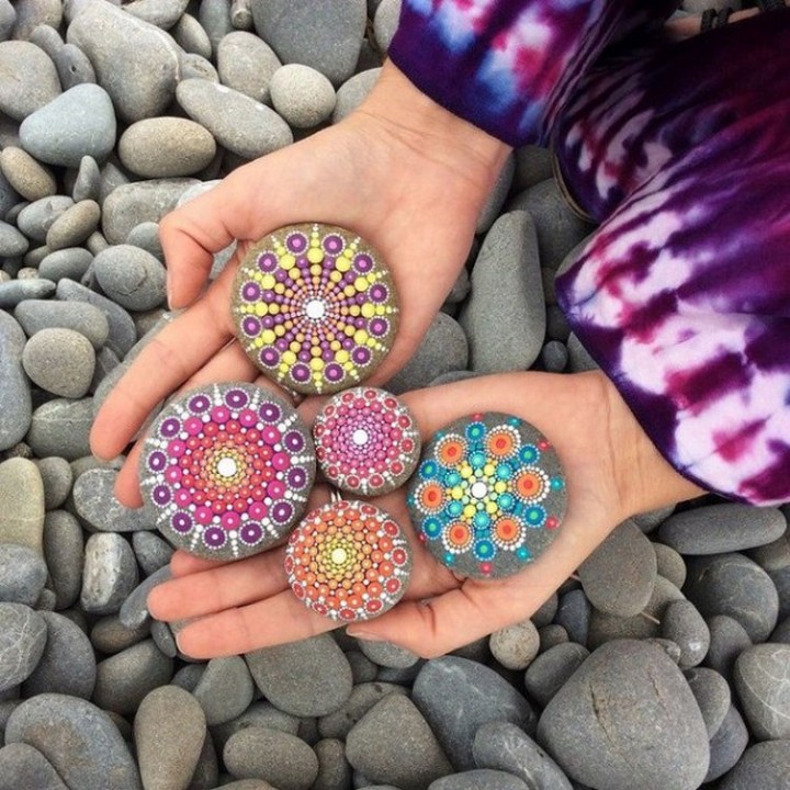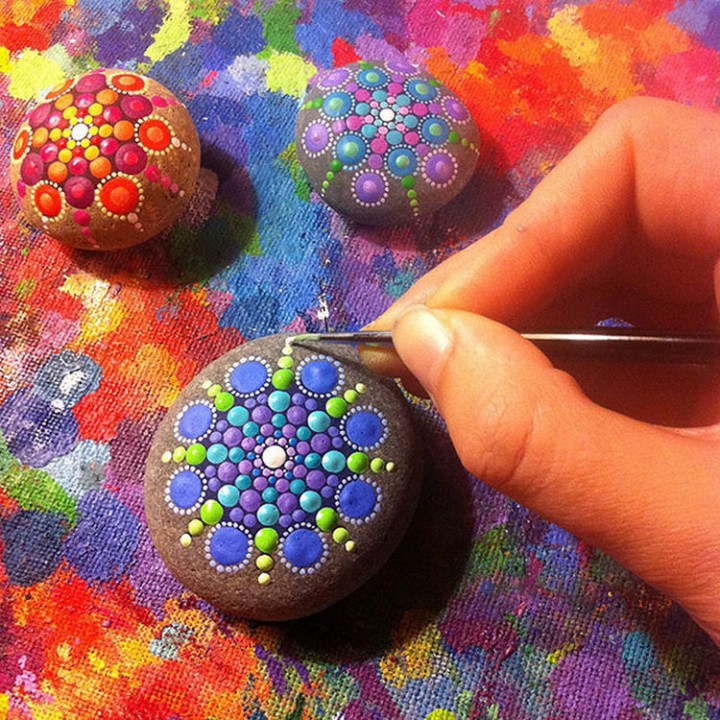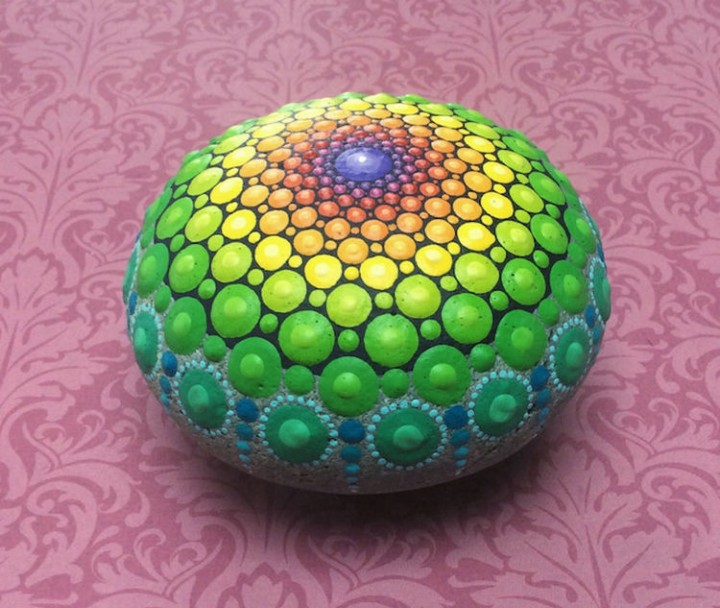 Elspeth McLean is a Canadian artist that transforms smooth ocean stones into eye-catching Mandala Stones. Each stone is hand painted and every painted design is unique and explodes with color.