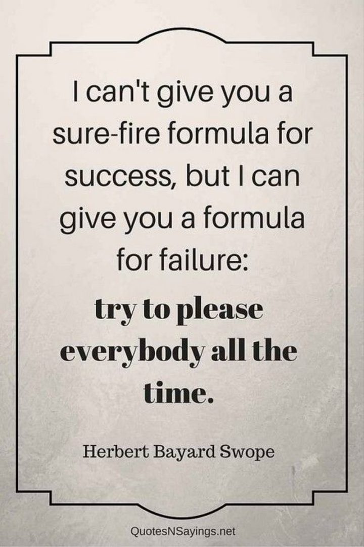 “I can’t give you a sure-fire formula for success, but I can give you a formula for failure: try to please everybody all the time.” – Herbert Bayard Swope