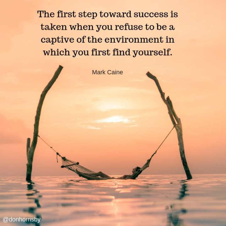 “The first step toward success is taken when you refuse to be a captive of the environment in which you first find yourself.” – Mark Caine