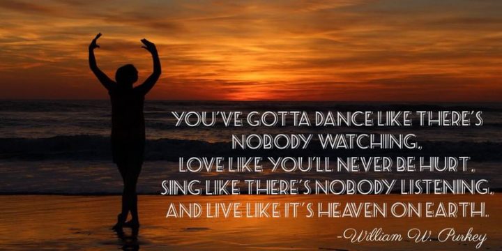 “You’ve gotta dance like there’s nobody watching, Love like you’ll never be hurt, Sing like there’s nobody listening, And live like it’s heaven on earth.” – William W. Purkey