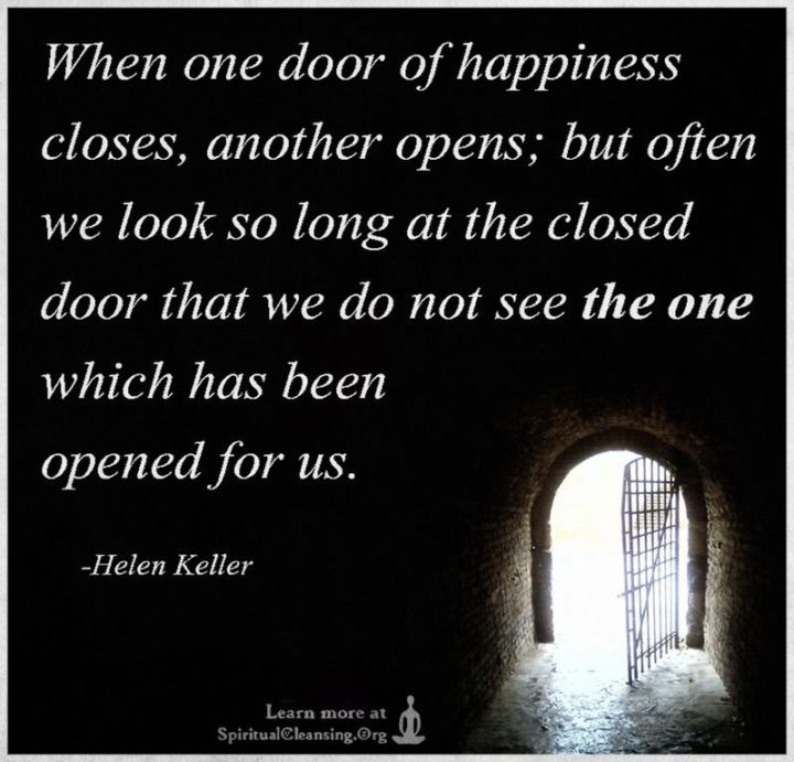 “When one door of happiness closes, another opens; but often we look so long at the closed door that we do not see the one which has been opened for us.” – Helen Keller