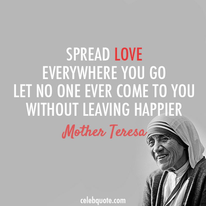 “Spread love everywhere you go. Let no one ever come to you without leaving happier.” – Mother Teresa