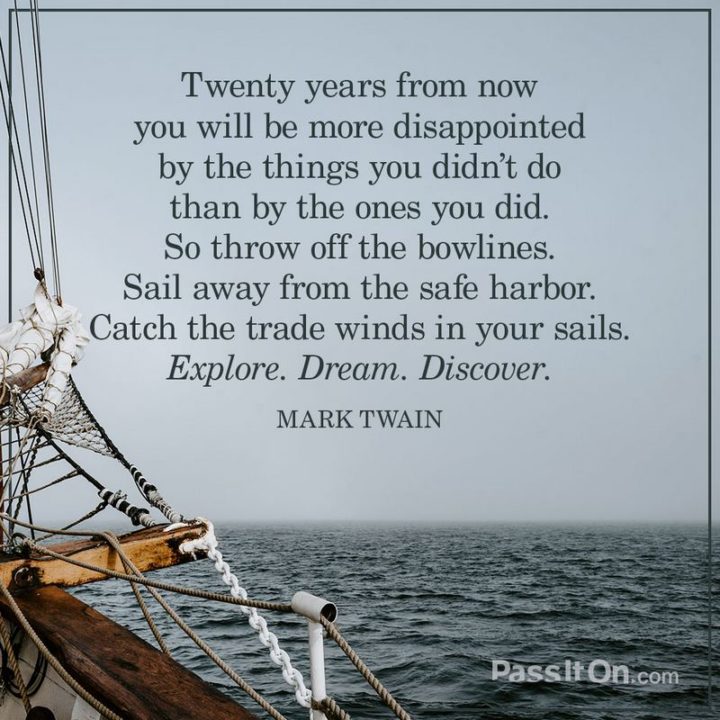“Twenty years from now you will be more disappointed by the things that you didn’t do than by the ones you did do.” – Mark Twain
