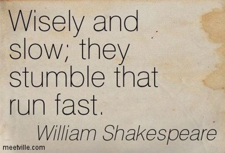 “Wisely, and slow. They stumble that run fast.” – William Shakespeare