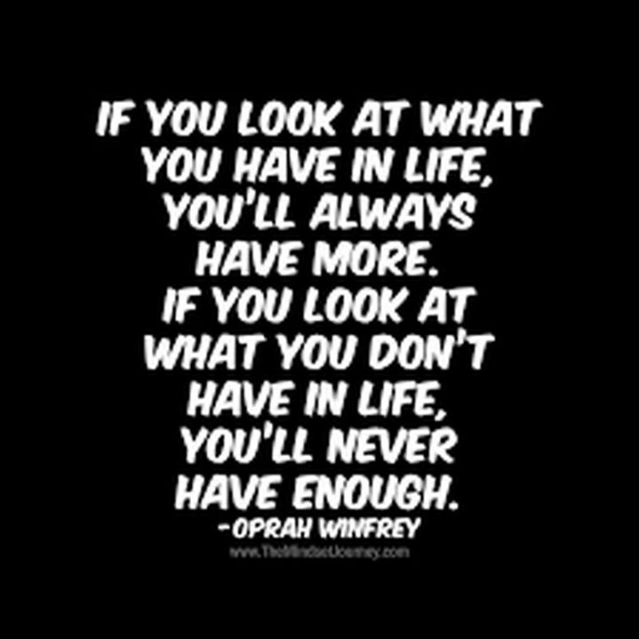 “If you look at what you have in life, you’ll always have more. If you look at what you don’t have in life, you’ll never have enough.” – Oprah Winfrey