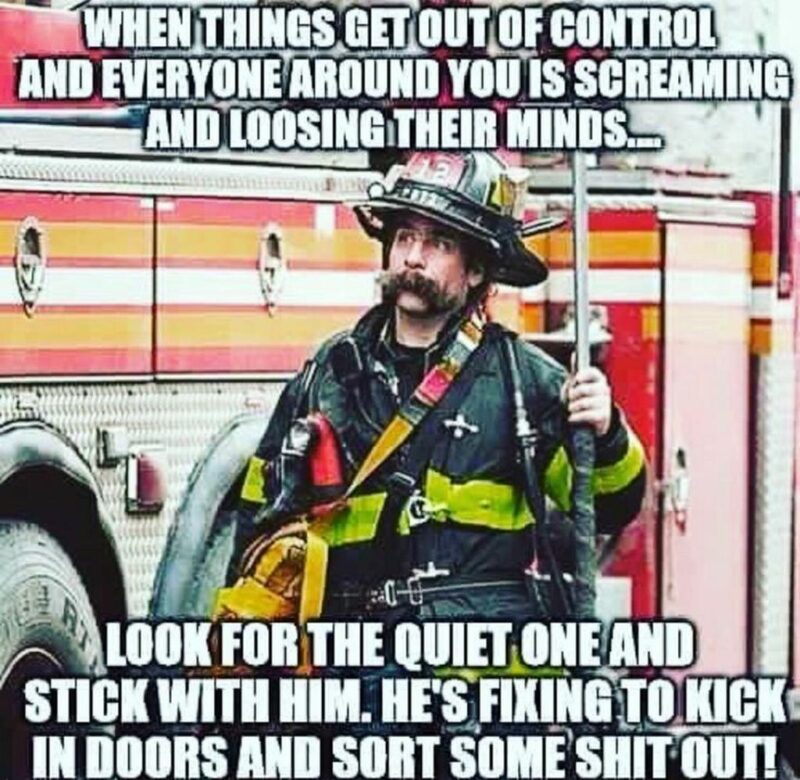 !["When things get out of control and everyone around you is screaming and losing their minds...Look for the quiet one and stick with him. He's fixing to kick in doors and sort some [censored] out!"](https://www.winkgo.com/wp-content/uploads/2023/08/fire-memes-27-800x780.jpg)