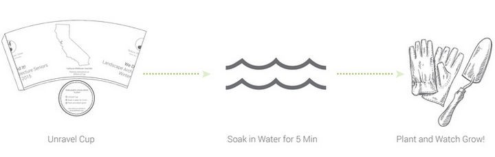 The consumer can either plant the cup themselves or throw it into a special bin at the coffee shop where it was purchased. It will be planted by groups or organizations.