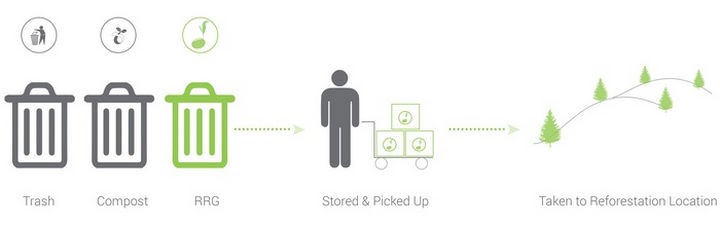 When planted, each post-consumer paper-based cup which will be able to filter over 1 ton of CO2 out of the atmosphere annually.
