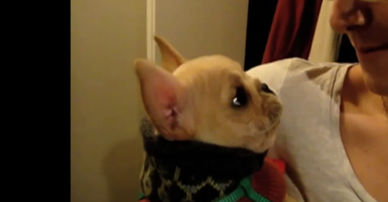 This adorable little French Bulldog surprised her owner when she told her dog she loved her. The little pooch reciprocated by saying that she loved her too! If you listen closely, you could make out the words that she is trying to say and it is simply too cute.