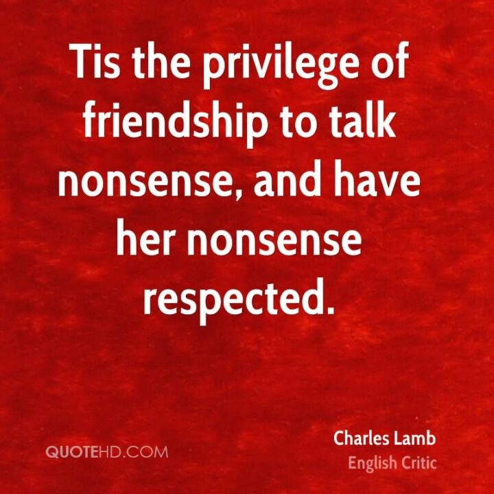 50) “Tis the privilege of friendship to talk nonsense and have her nonsense respected.” – Charles Lamb
