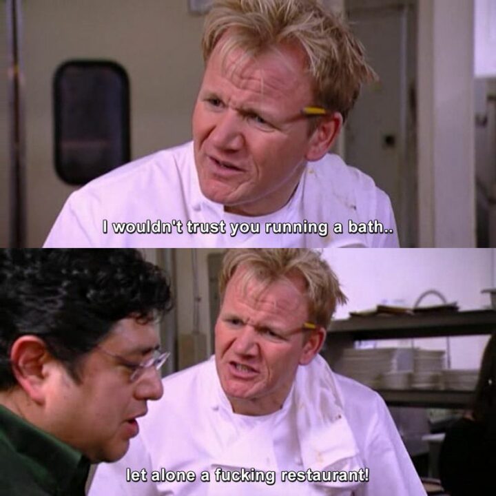 !["I wouldn't trust you running a bath...Let alone a [censored] restaurant.](https://www.winkgo.com/wp-content/uploads/2022/07/gordon-ramsay-memes-33-720x720.jpg)