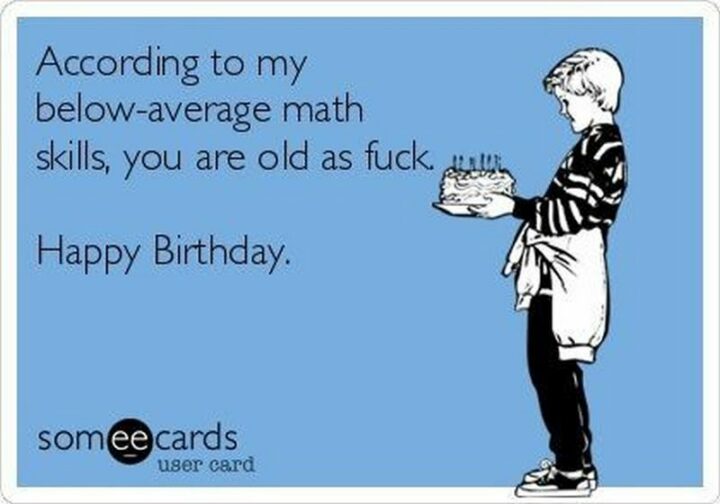 “According to my below-average math skills, you are old as [censored]. Happy birthday.”