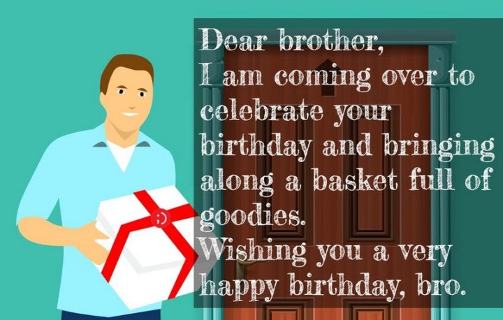 “Dear brother, I am coming over to celebrate your birthday and bringing along a basket full of goodies. Wishing you a very happy birthday, bro.”