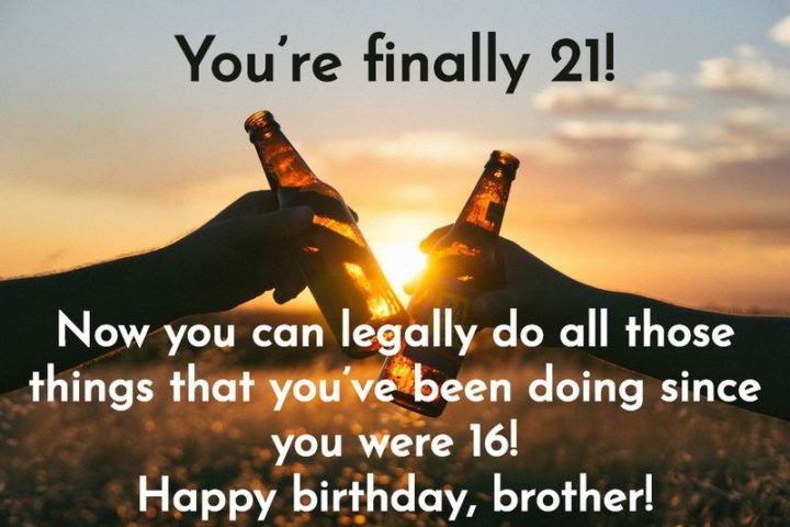“You’re finally 21! Now you can legally do all those things that you’ve been doing since you were 16! Happy birthday, brother!”