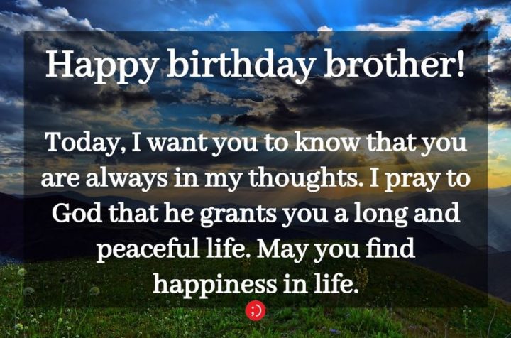 “Happy birthday brother! Today, I want you to know that you are always in my thoughts. I pray to God that he grants you a long and peaceful life. May you find happiness in life.”