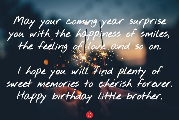“May your coming year surprise you with the happiness of smiles, the feeling of love, and so on. I hope you will find plenty of sweet memories to cherish forever. Happy birthday little brother.”