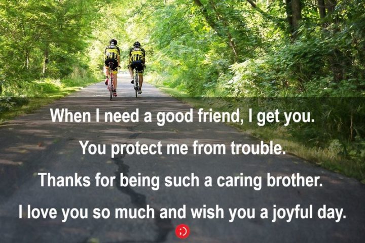 “When I need a good friend, I get you. You protect me from trouble. Thanks for being such a caring brother. I love you so much and wish you a joyful day.“