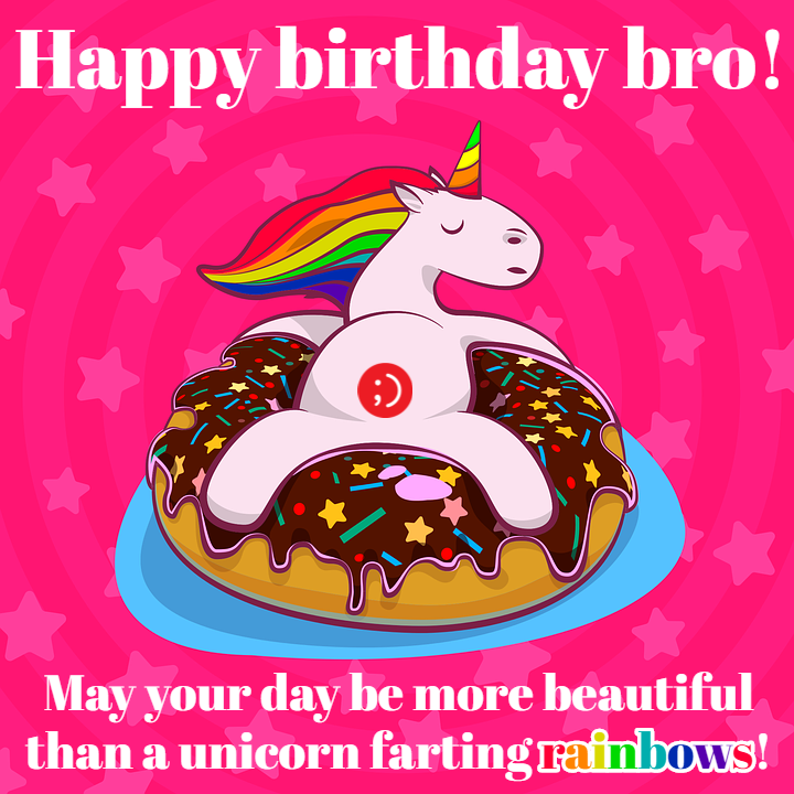 “Happy birthday bro! May your day be more beautiful than a unicorn farting rainbows!”