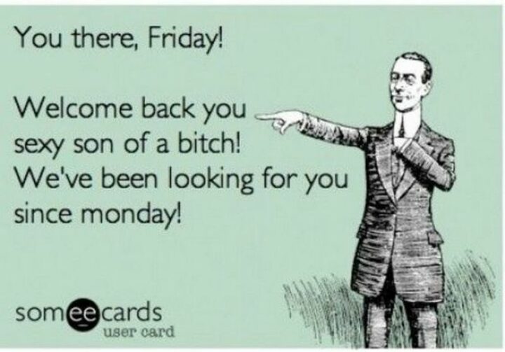 !["You there, Friday! Welcome back you sexy son of a [censored]! We've been looking for you since Monday!"](https://www.winkgo.com/wp-content/uploads/2022/07/happy-friday-memes-63-720x503.jpg)
