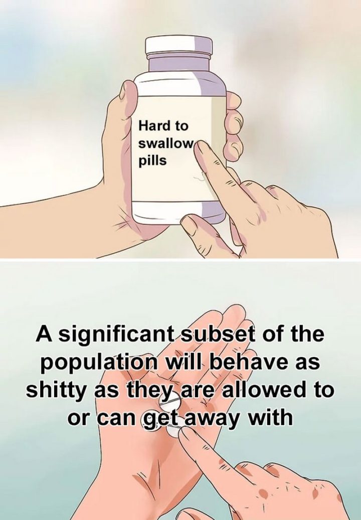 ![61 "Hard to Swallow Pills" Memes - "A significant subset of the population will behave as [censored] as they are allowed to or can get away with."](https://www.winkgo.com/wp-content/uploads/2020/09/hard-pill-to-swallow-memes-01-720x1037.jpg)