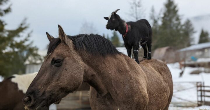 Animals can surprise anyone and we’ve seen everything from a turtle befriending a parrot to a deer spending the morning with a cat. On a family farm named Kootenay Acres in Krestova, British Columbia, there are two animals that quickly formed a friendship. A goat named Arret has taken a particular interest in jumping on the back of a horse named Bouge. The two have French names with Arret, meaning to stop, and Bouge, meaning to move…red light, green light! I love it!