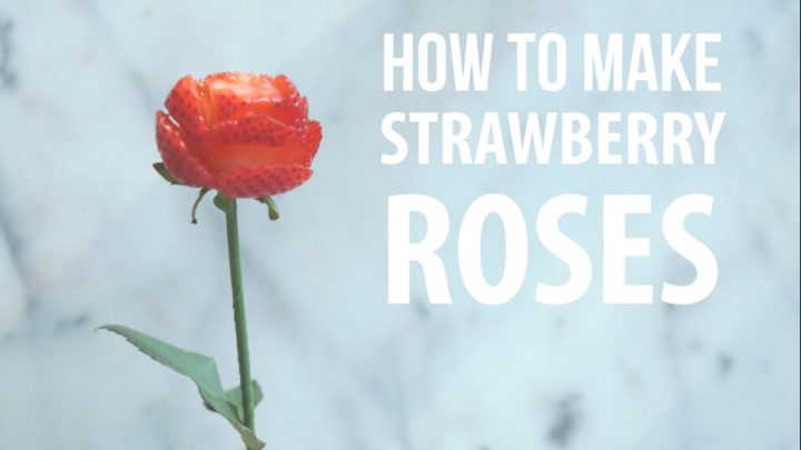 This would make a great gift for Valentine’s Day or a birthday and because it is handmade, it means so much more to the one you love. She begins by taking leaves from actual roses to build artificial stems from skewers wrapped with floral tape. She then secures the sliced strawberry to the skewer and the result is a beautiful edible rose!