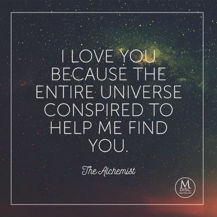 6) “I love you because the entire universe conspired to help me find you.” – The Alchemist