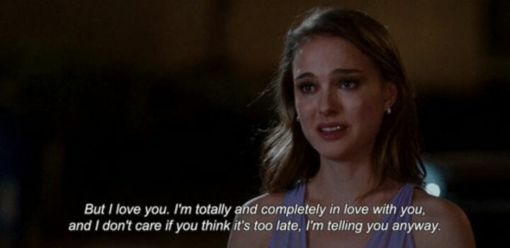 11) “But I love you. I’m totally and completely in love with you, and I don’t care if you think it’s too late. I’m telling you anyway.” – No Strings Attached