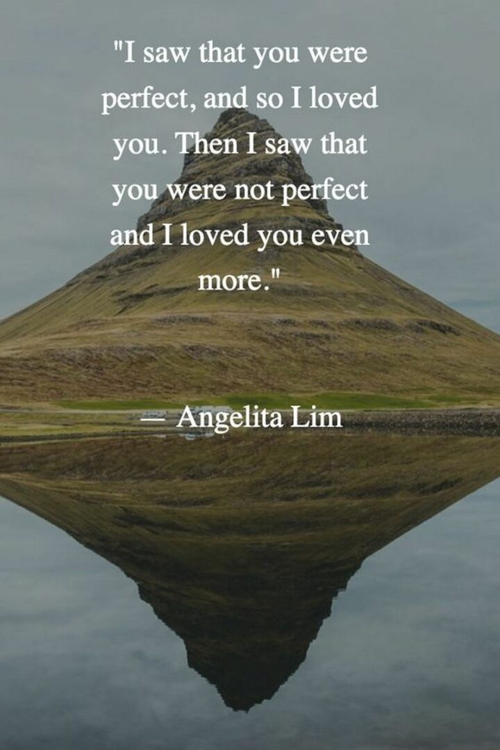 14) “I saw that you were perfect, and so I loved you. Then I saw that you were not perfect and I loved you even more.” – Angelita Lim