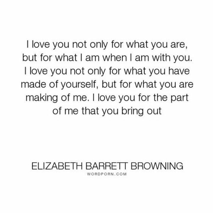 29) “I love you not only for what you are but for what I am when I am with you. I love you not only for what you have made of yourself but for what you are making of me. I love you for the part of me that you bring out.” – Elizabeth Barrett Browning