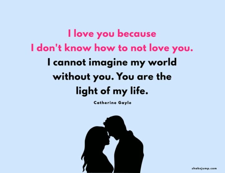 36) “I love you because I don’t know how to not love you. I cannot imagine my world without you. You are the light of my life.” – Catherine Gayle