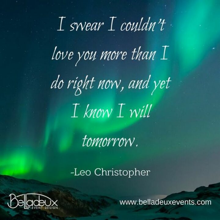 37) “I swear I couldn’t love you more than I do right now, and yet I know I will tomorrow.” – Leo Christopher