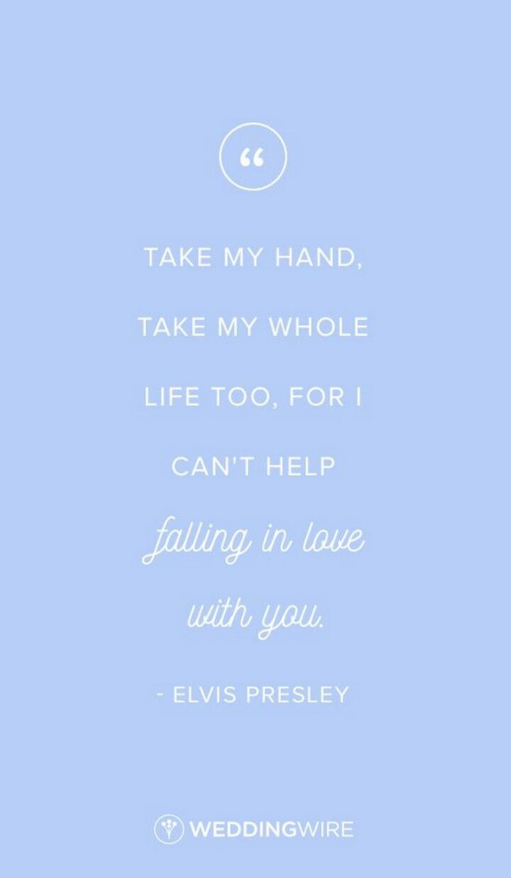 41) “Take my hand, take my whole life too. For I can’t help falling in love with you.” – Elvis Presley
