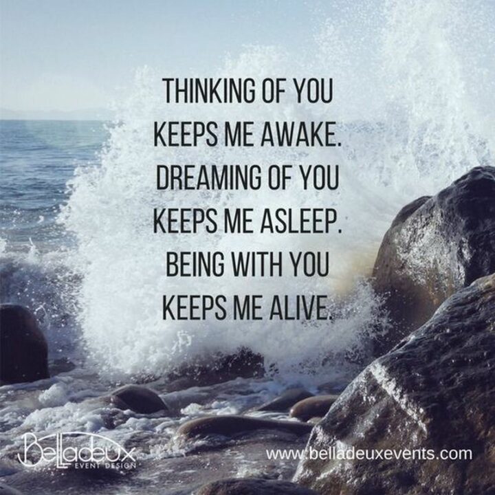 42) “Thinking of you keeps me awake. Dreaming of you keeps me asleep. Being with you keeps me alive.” – Unknown