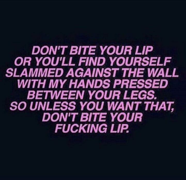“Don’t bite your lip or you’ll find yourself slammed against the wall with my hands pressed between your legs. So unless you want that, don’t bite your [censored] lip.”