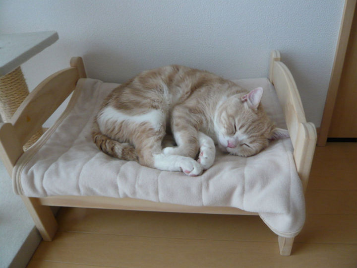 I’ve said it many times. I love Japanese culture because they can infuse “cuteness” into almost everything. Who else would think of turning a Duktig doll bed from IKEA into a luxurious bed for cats?