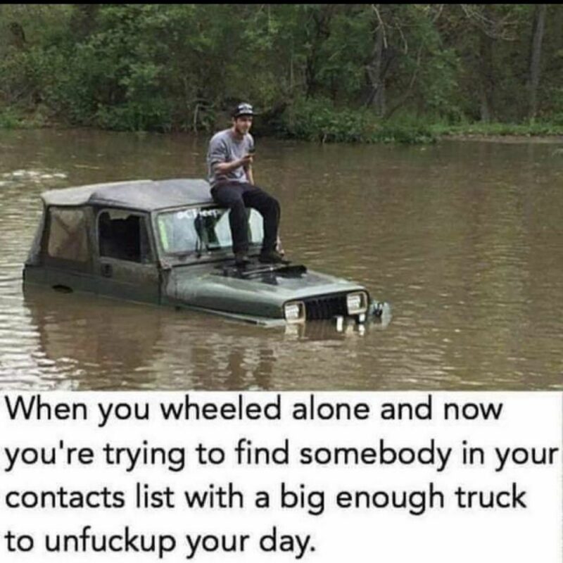 !["When you wheeled alone and now you're trying to find somebody in your contacts list with a big enough truck to [censored] your day."](https://www.winkgo.com/wp-content/uploads/2023/06/jeep-memes-38-800x800.jpg)