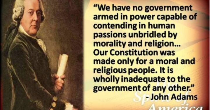 40) “We have no government armed with power capable of contending with human passions unbridled by morality and religion. Our constitution was made for a moral and religious people…it is wholly inadequate to the government of any other.”