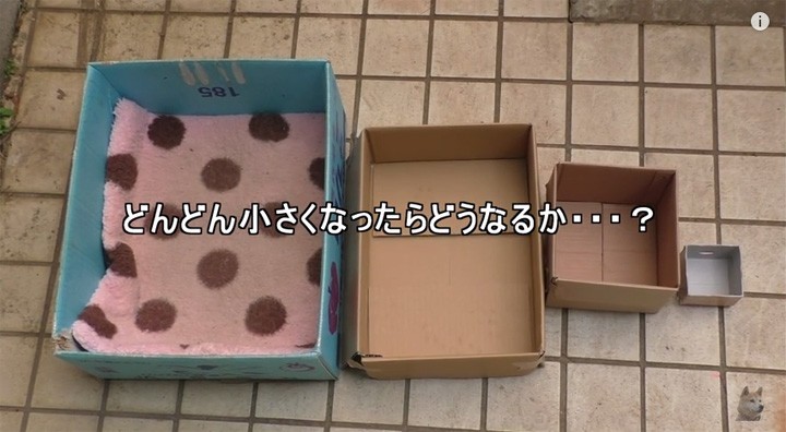 We all know that cats are renowned for sitting in the smallest boxes possible but are dogs the same? That question was answered when Koharu’s owner progressively switched his box with a smaller one and the dog’s reaction is priceless each time.