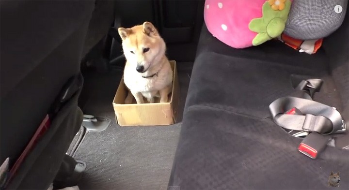 This adorable Shiba Inu named Koharu loves riding in the car like most dogs but when he does, he likes to sit in a comfortable fleece lined cardboard box that his owner made for him. Many people love to play harmless pranks on the people and pets they love and one day, his owner had an idea.