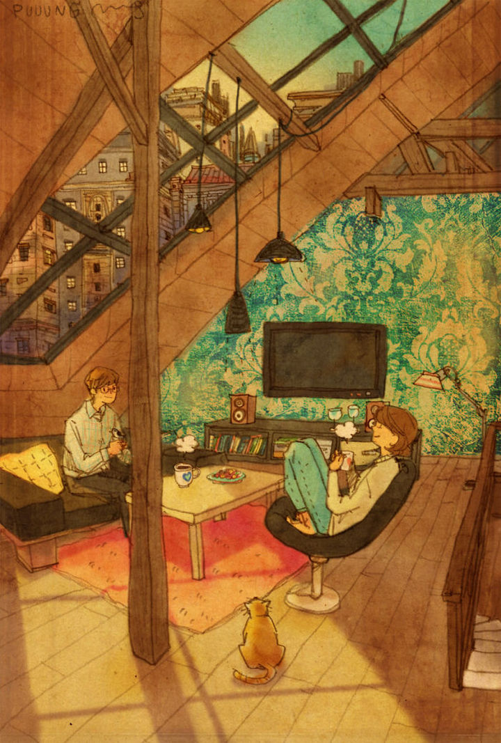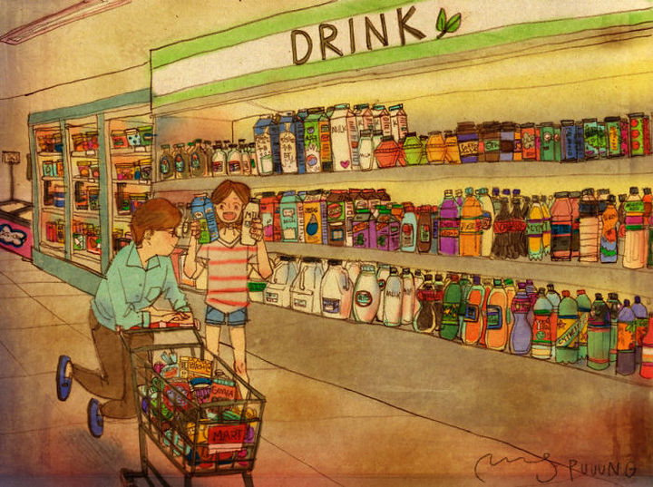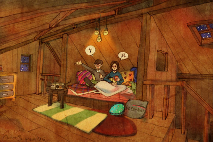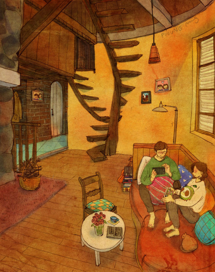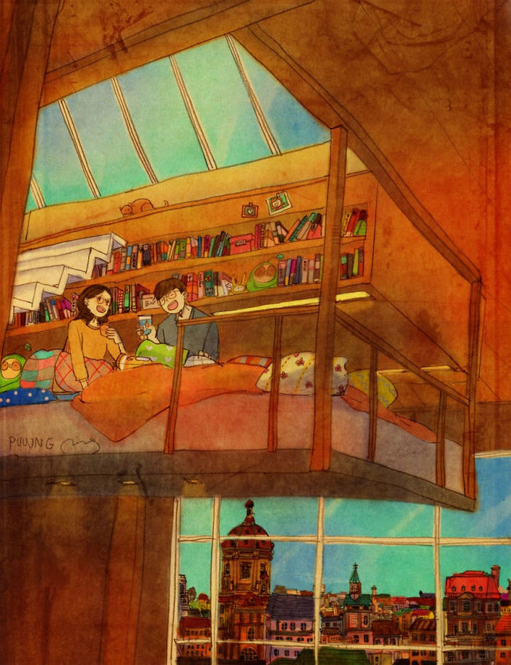 Korean artist ‘Puuung’ illustrates just some of the things we do that makes the people we share our lives with feel special. We tend to buy flowers or gifts but sometimes a small gesture that expresses our love is truly the real meaning of love.