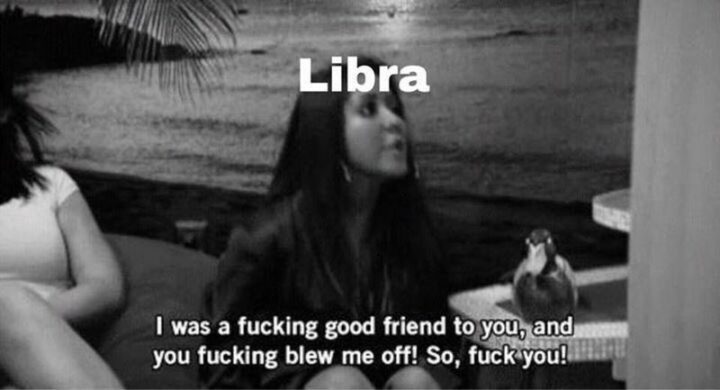 !["Libra: I was a [censored] good friend to you, and you [censored] blew me off! So, [censored] you!"](https://www.winkgo.com/wp-content/uploads/2022/01/libra-zodiac-memes-45-720x390.jpg)
