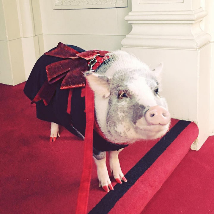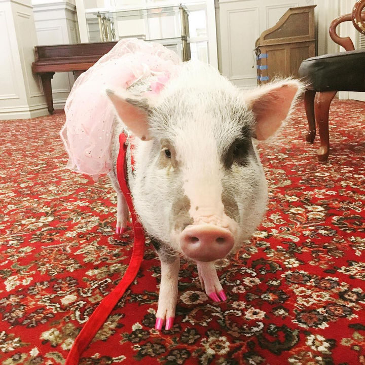 2) LiLou the therapy pig loves to visit seniors at hospitals and nursing homes.