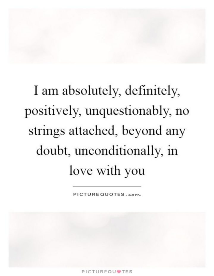 “I am absolutely, definitely, positively, unquestionably, no strings attached, beyond any doubt, unconditionally, in love with you.” – Anonymous