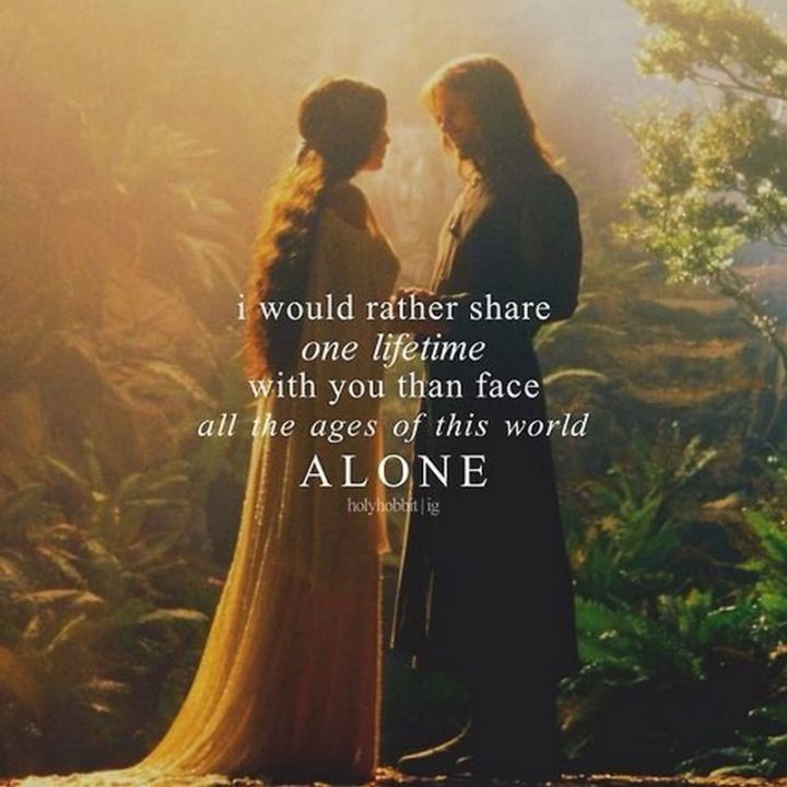 Love quotes for her: “I would rather share one lifetime with you than face all the ages of this world alone.” – Anonymous