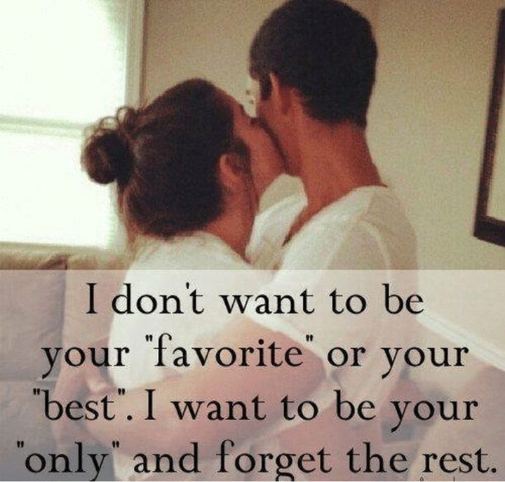 Love quotes for her: “I don’t want to be your ‘favorite’ or your ‘best’. I want to be your ‘only’ and forget the rest.” – Anonymous