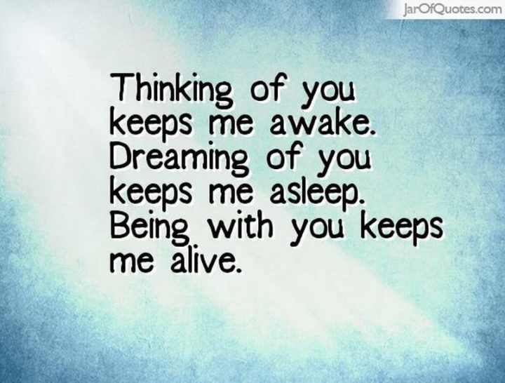 “Thinking of you keeps me awake. Dreaming of you keeps me asleep. Being with you keeps me alive.” – Anonymous