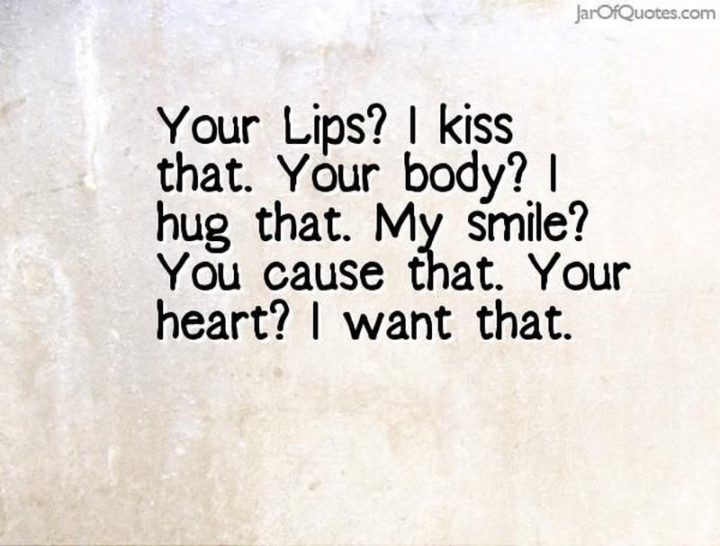 “Your lips? I kiss that. Your body? I hug that. My smile? You cause that. Your heart? I want that.” – Anonymous