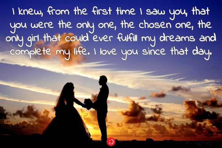 “I knew, from the first time I saw you, that you were the only one, the chosen one, the only girl that could ever fulfill my dreams and complete my life. I love you since that day.” – Anonymous