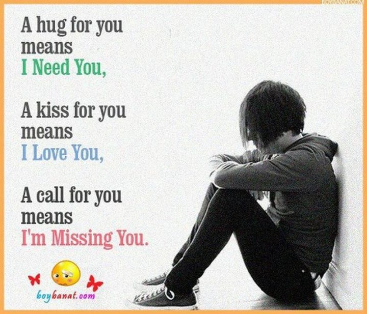 “A hug for you means I need you. A kiss for you means I love you. A call for you means I’m missing you.” – Beth Obedoza